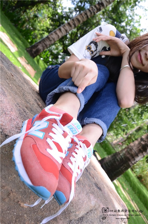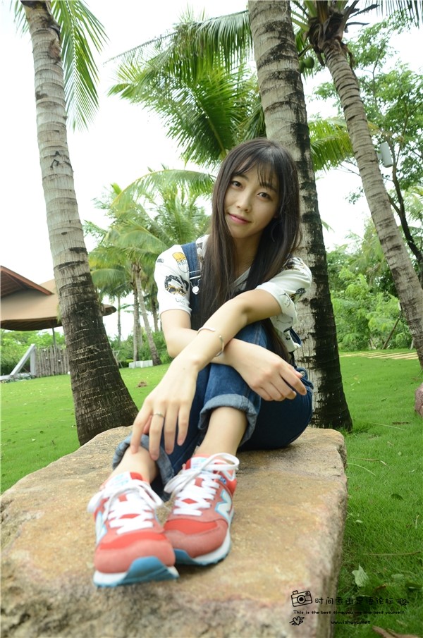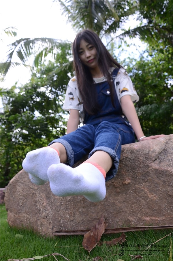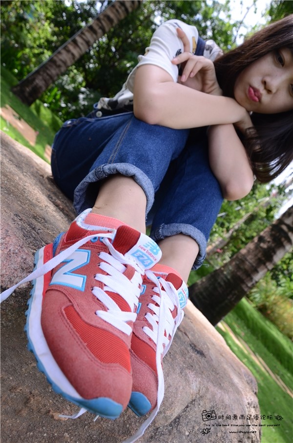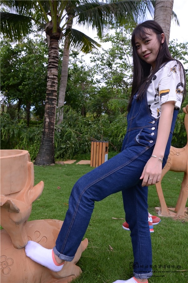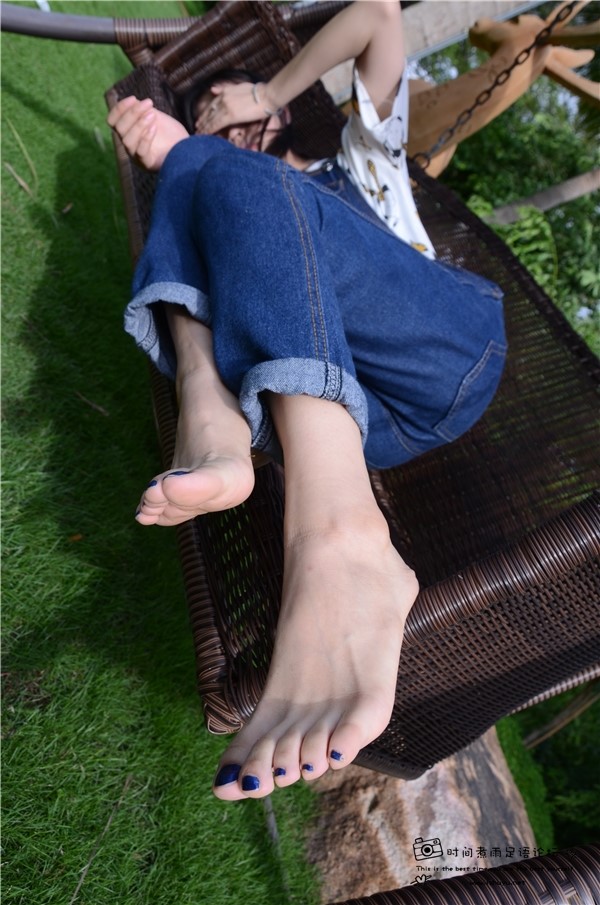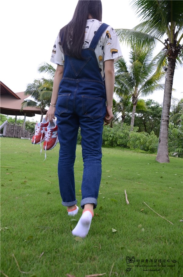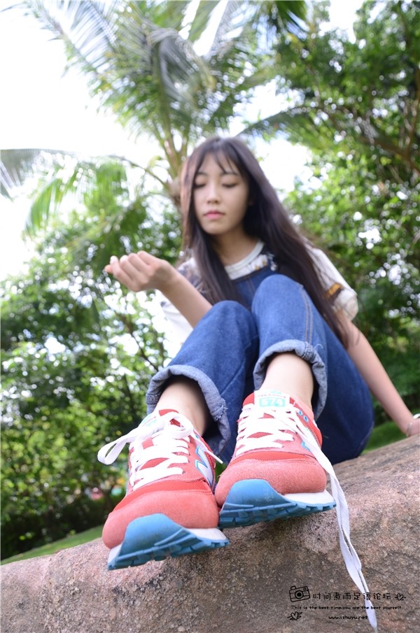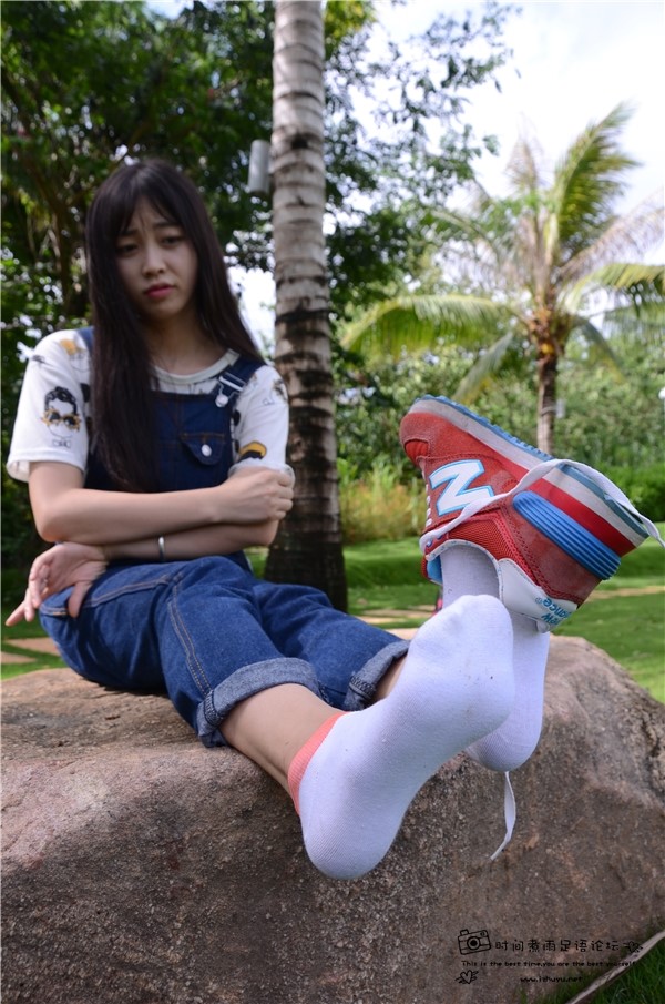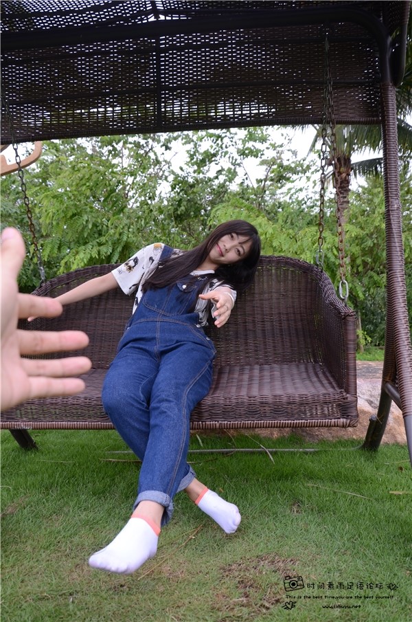 School beauty goddess NewBalance overalls white socks, art holding hands, sleeping beauty in the hammock, blue nail polish, I touched my feet casually |