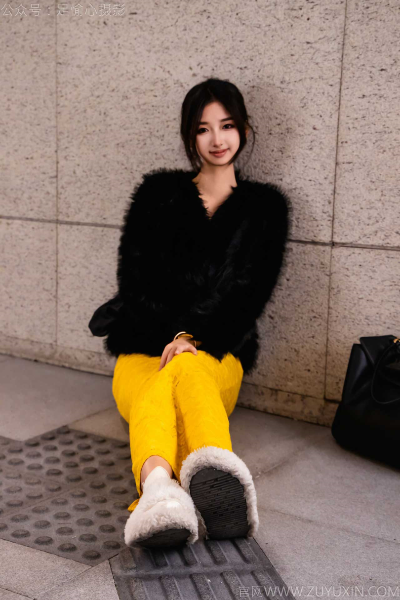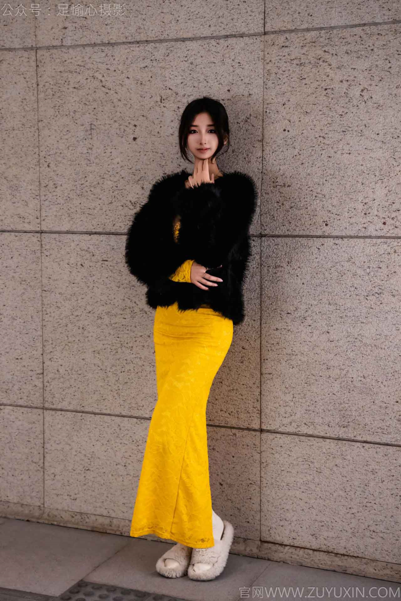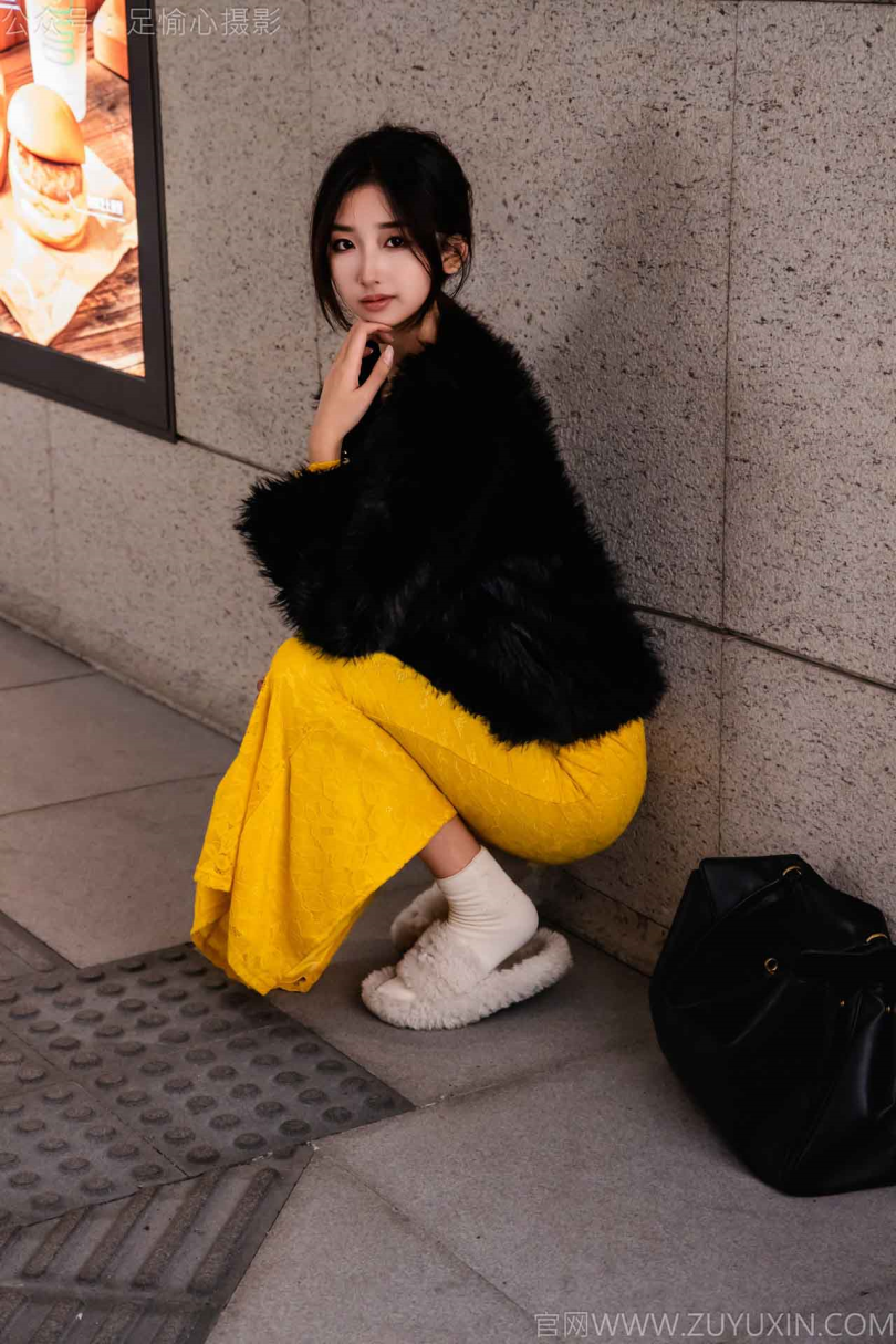 Foot Joy Photography Issue 10: Model Xingduo (Pairing: black sweater, yellow dress, plush slippers, white cotton socks, bare feet) |