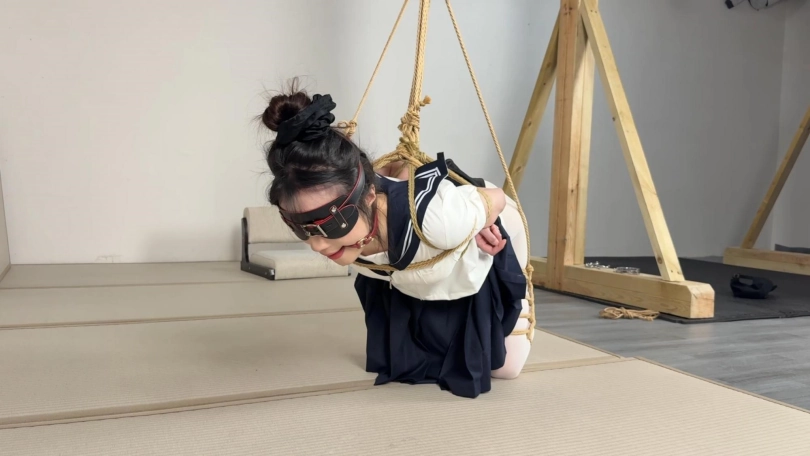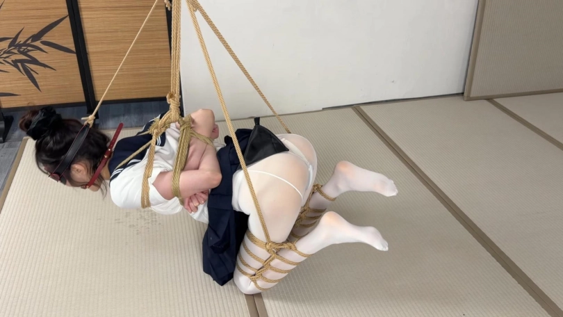 [Eye] Sailor white silk straight arms and Japanese-style back-tie folded legs and semi-suspended |