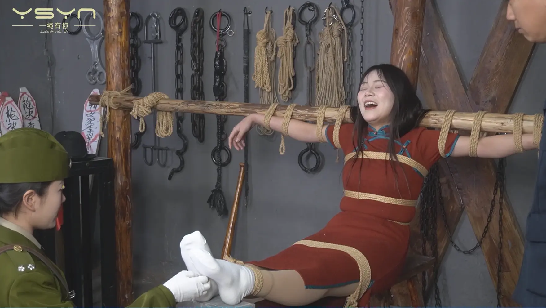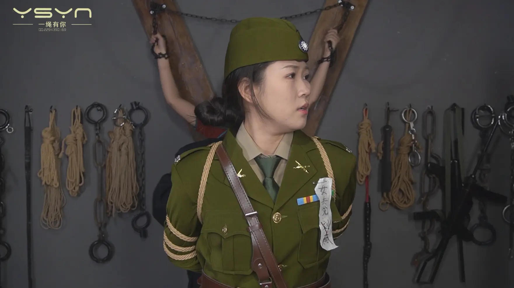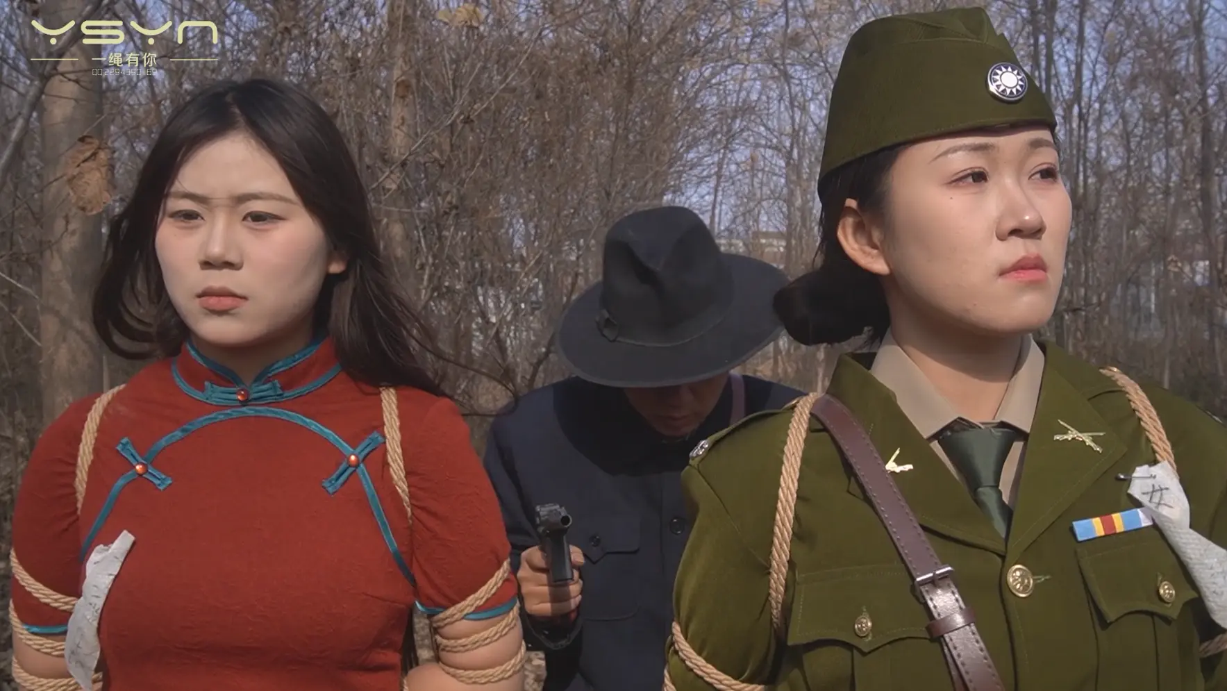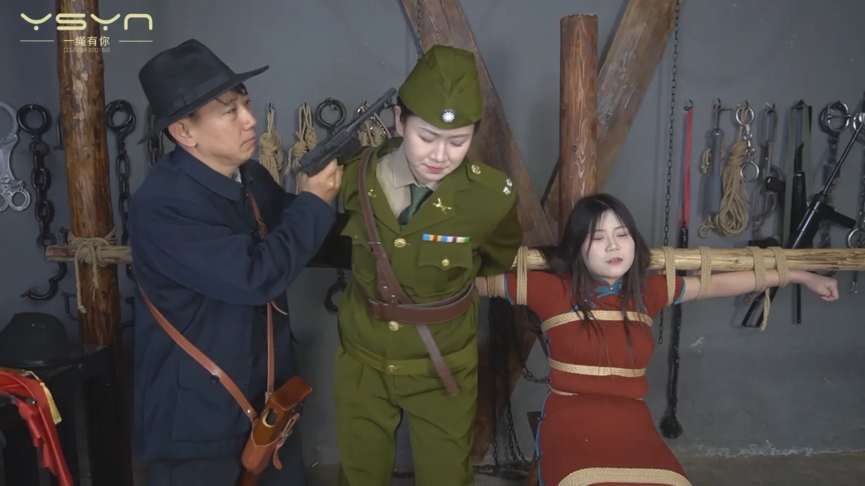 [A Rope Is With You] [A Beauty Under the Gun] When an undercover female military commander (Liu Yu) interrogated a female underground agent (Ding Qing), she was peeped by secret agents while having a secret conversation, and was tied to a tiger bench and shot in the execution ground. |