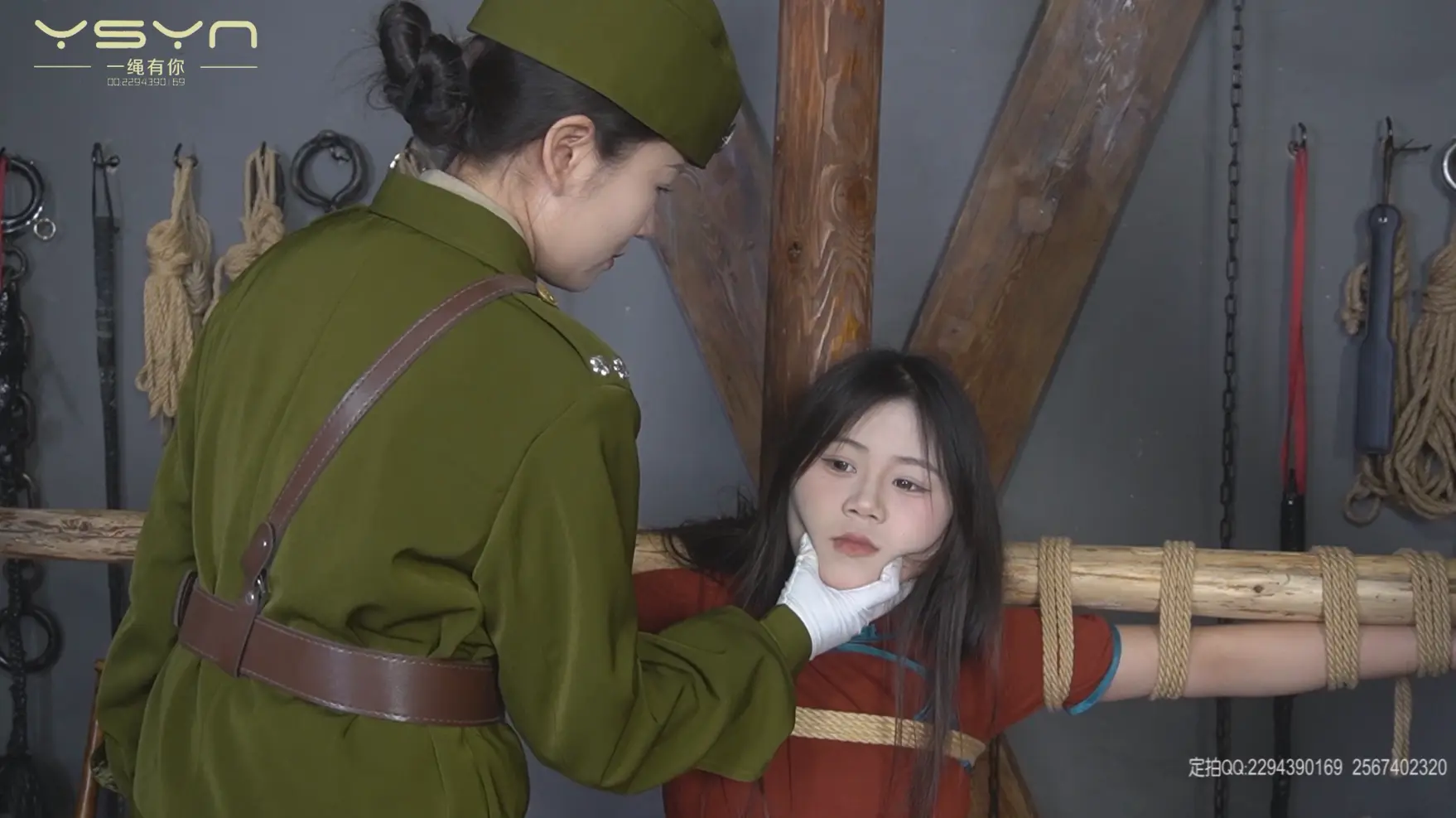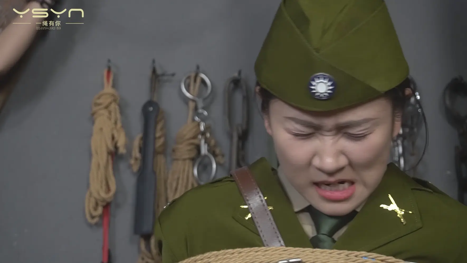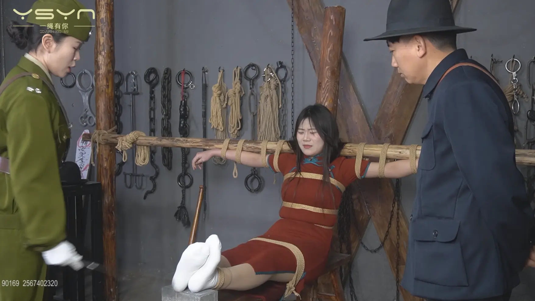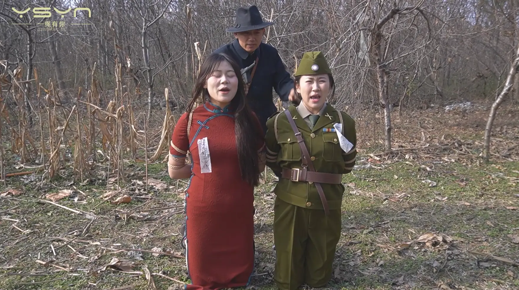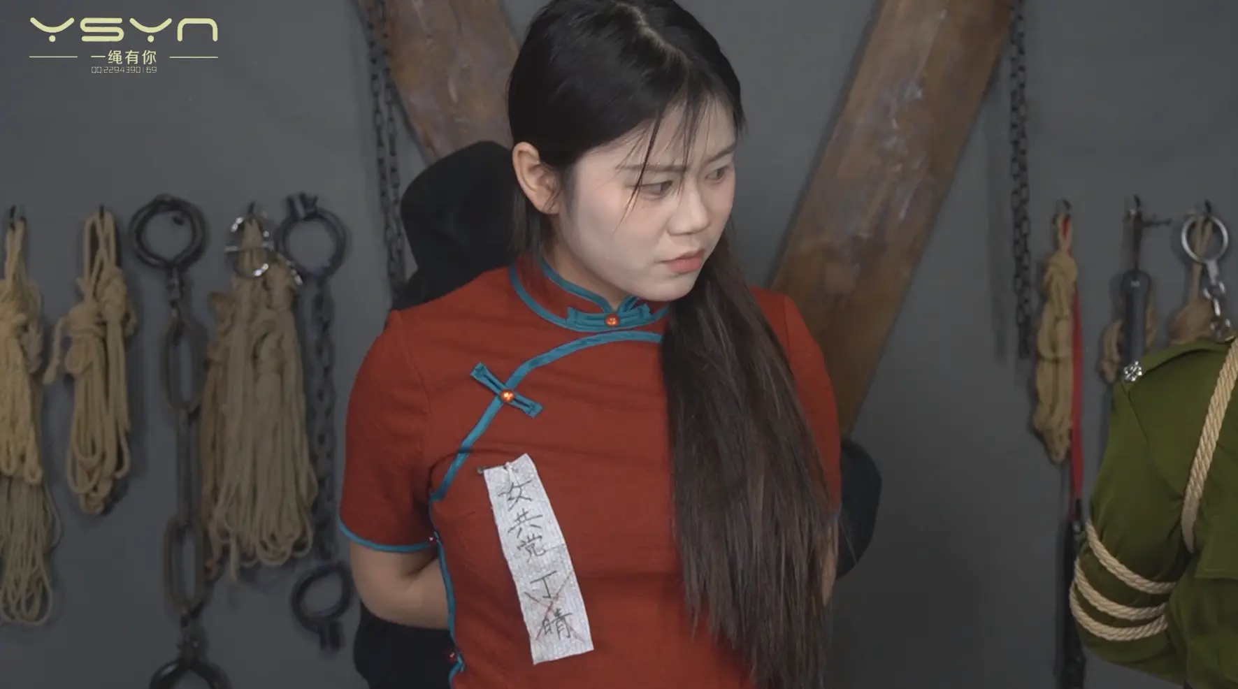 [A Rope Is With You] [A Beauty Under the Gun] When an undercover female military commander (Liu Yu) interrogated a female underground agent (Ding Qing), she was peeped by secret agents while having a secret conversation, and was tied to a tiger bench and shot in the execution ground. |