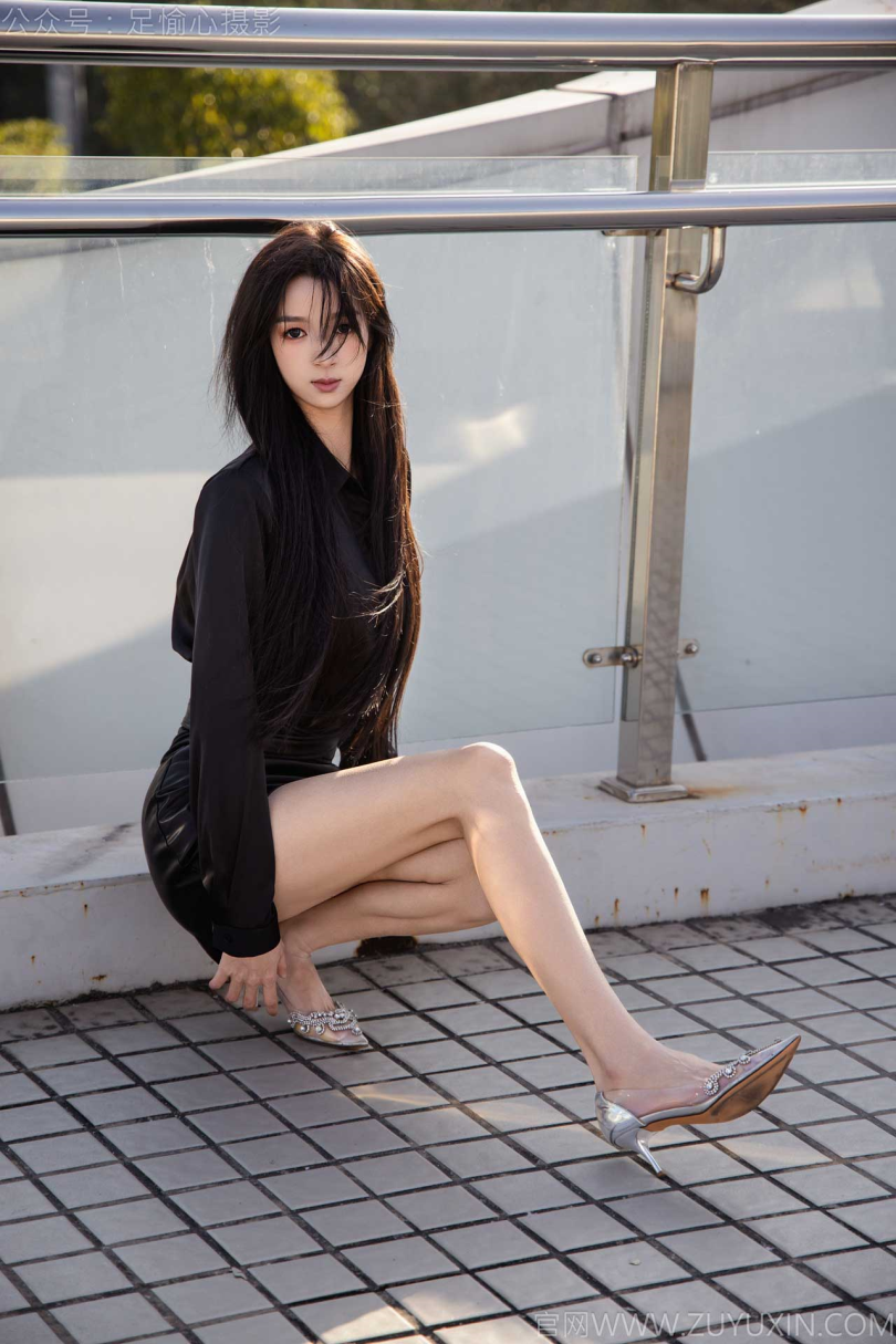 Foot Joy Photography Issue 20: Model Yunyue (Pairing: black shirt, leather skirt, high heels, bare feet) |